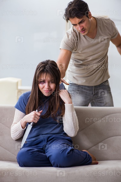 Отчаянная жена с агрессивным мужем в результате домашнего насилия