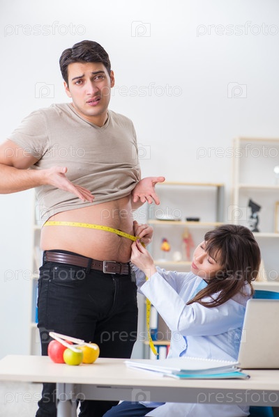 Врач-диетолог дает советы жировому пациенту с избыточным весом