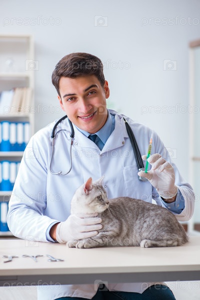 Ветеринар осматривает больного кота в больнице