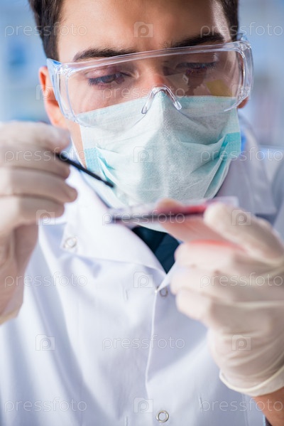 Лабораторный ассистент анализирует образцы крови в больнице