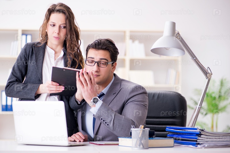 Концепция сексуального домогательства с мужчиной и женщиной в офисе