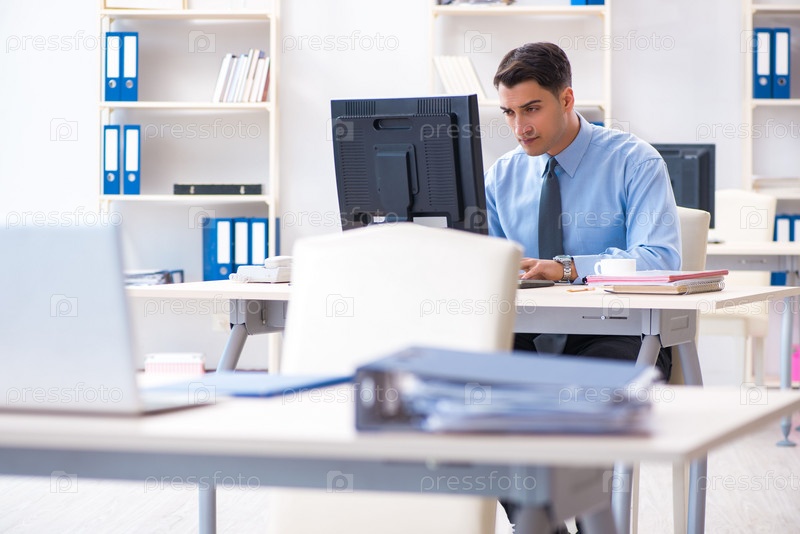 Красивый бизнесмен-сотрудник, сидящий за своим столом в офисе