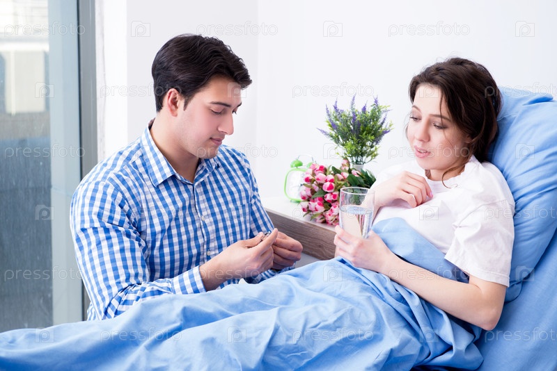 Заботливый любящий муж навещает беременную жену в больнице