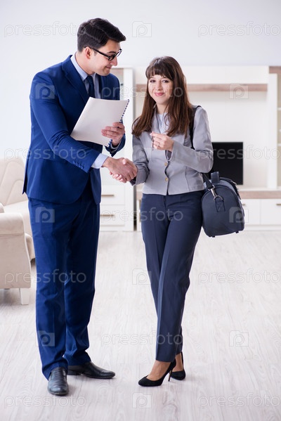 Агент по недвижимости показывает владельцу новую квартиру