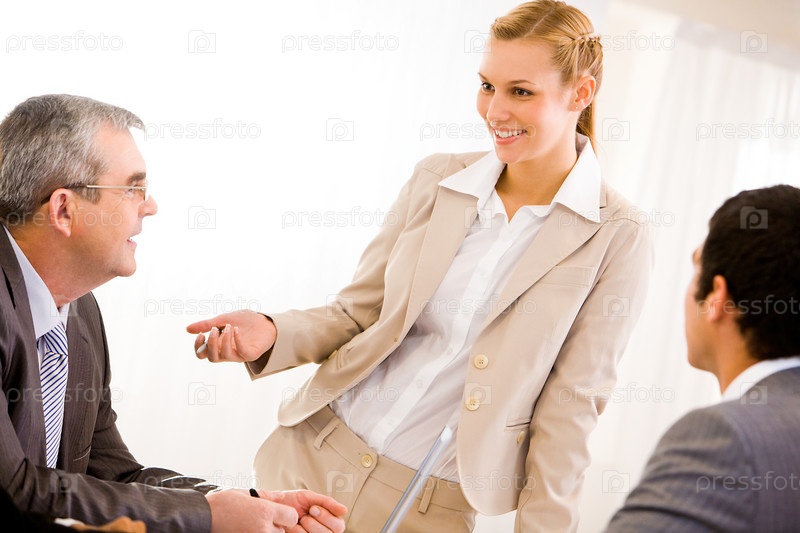 Изображение деловой женщины, которая делится своими идеями на встрече