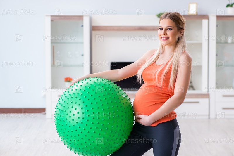 Молодая женщина, готовящаяся к родам, тренируется дома