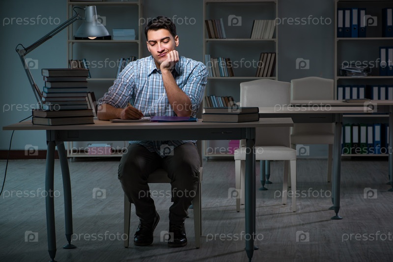 Студент, готовящийся к экзаменам поздно ночью