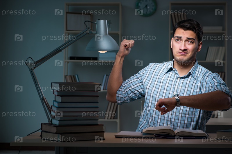 Студент, готовящийся к экзаменам поздно ночью