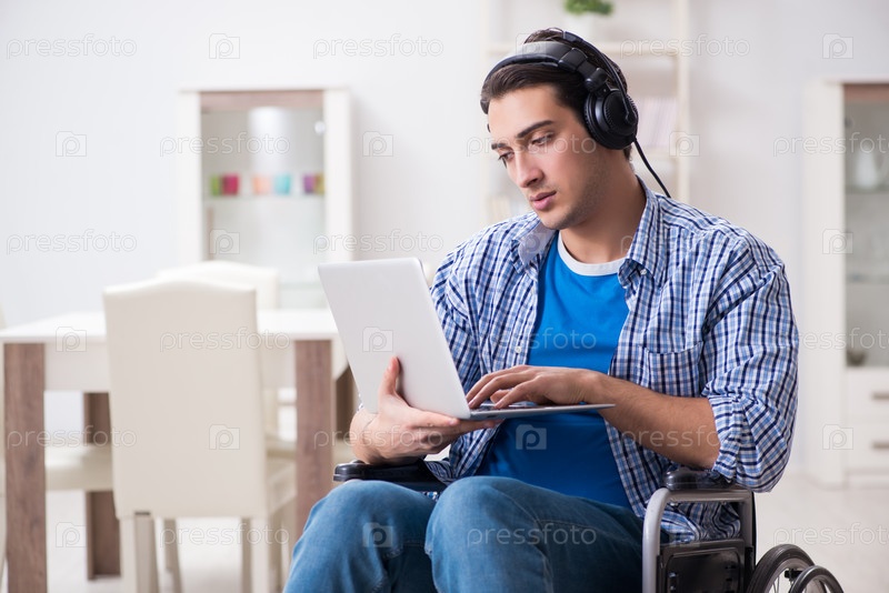 Инвалид слушает музыку в инвалидном кресле