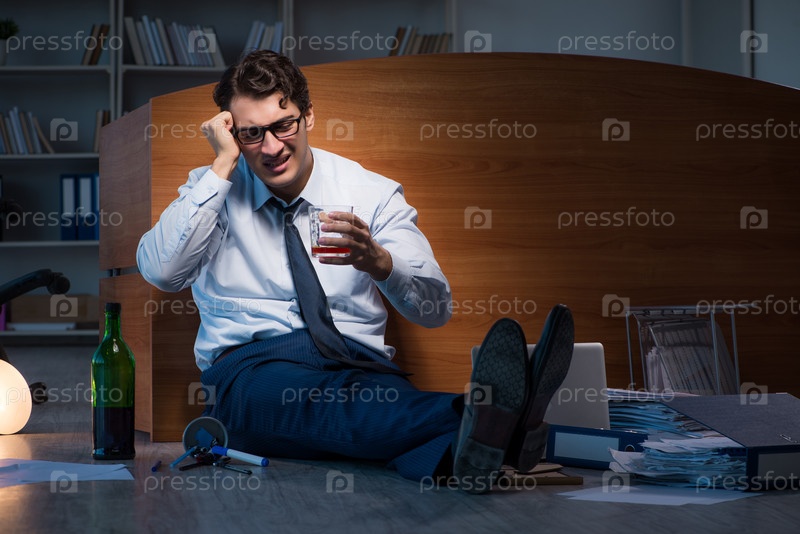 Стрессовый бизнесмен, работающий сверхурочно в депрессии