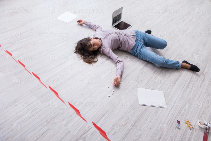 Мертвая женщина на полу после самоубийства