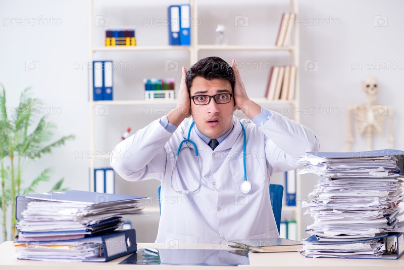 Загруженный врач с слишком большой работой в больнице