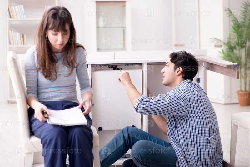 Муж ремонтирует разбитый стол дома