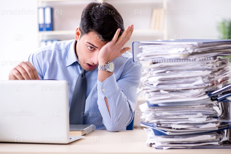 Чрезвычайно занятый бизнесмен, работающий в офисе