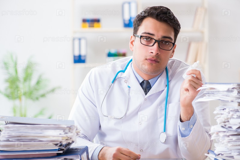 Загруженный врач с слишком большой работой в больнице