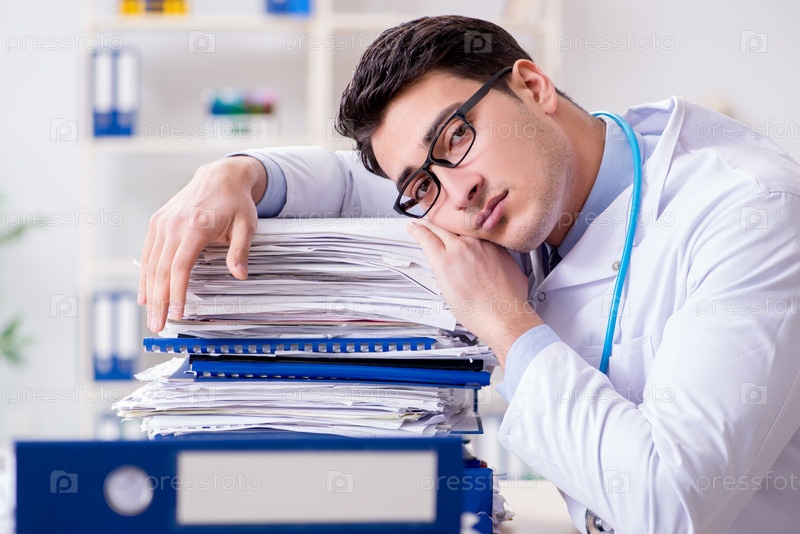 Загруженный врач с слишком большой работой в больнице
