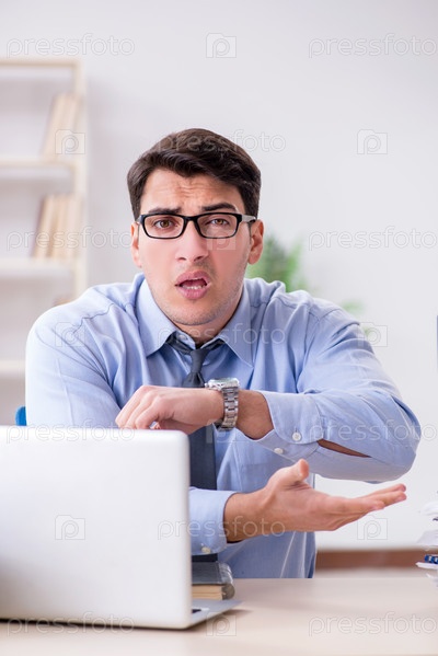 Чрезвычайно занятый бизнесмен, работающий в офисе