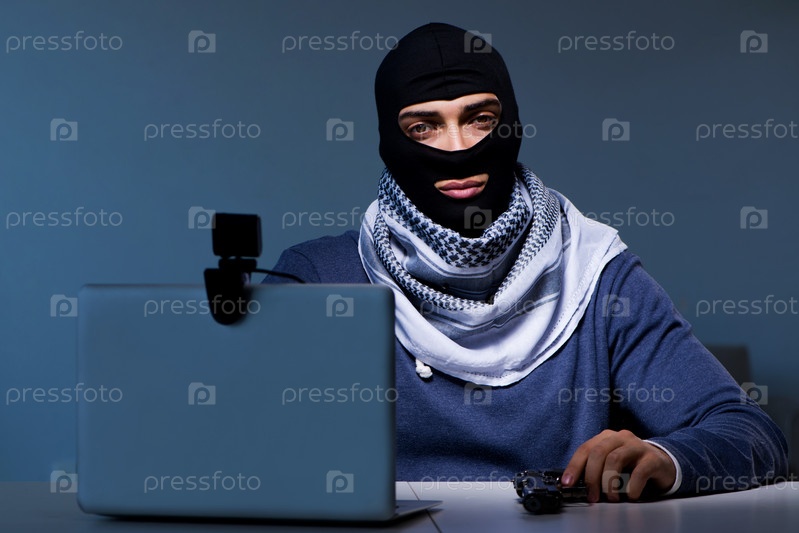 Хакер, носящий маску из балаклавы, взламывает компьютер