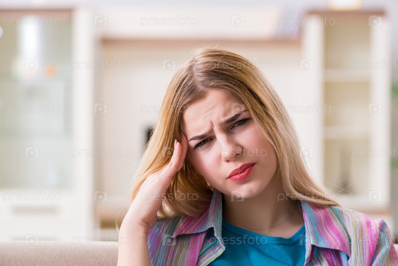 Молодая женщина страдает от боли дома