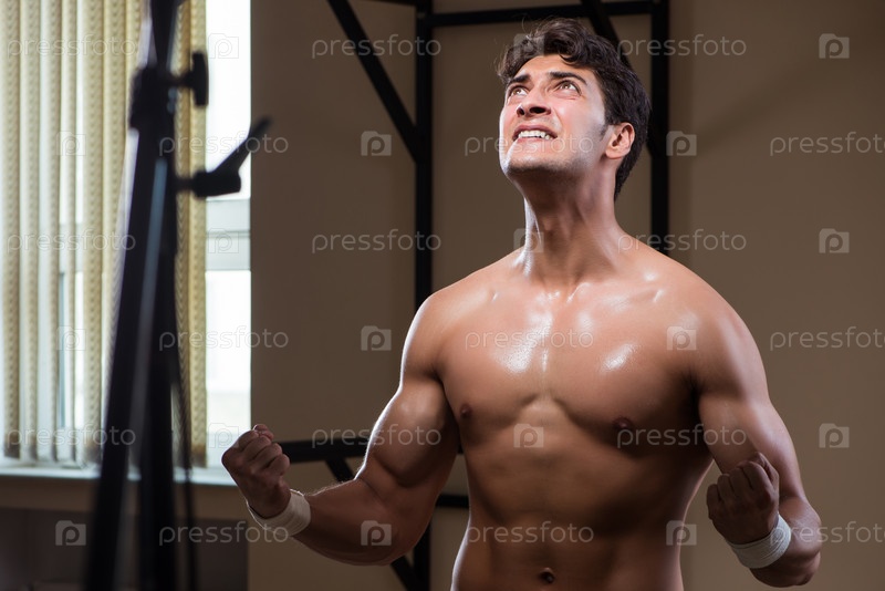 Разорванный мускулистый мужчина в тренажерном зале занимается спортом