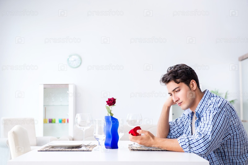 Мужчина в одиночестве готовится к романтическому свиданию со своей возлюбленной