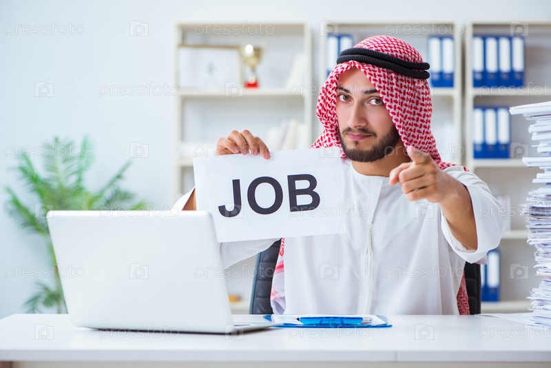 Арабский мужчина сидит за столом с сообщением