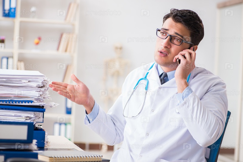 Загруженный врач с слишком большой работой в больнице
