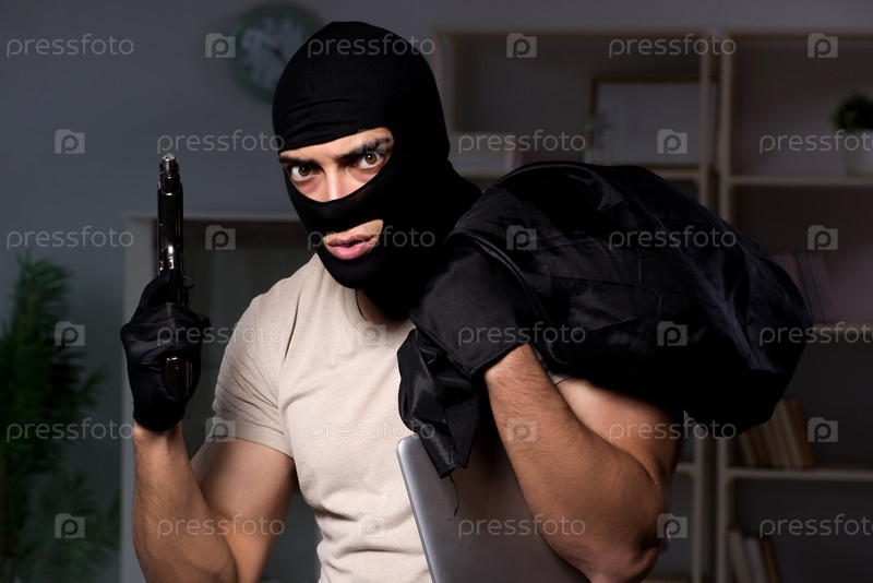 Вор, носящий маску из балаклавы на месте преступления
