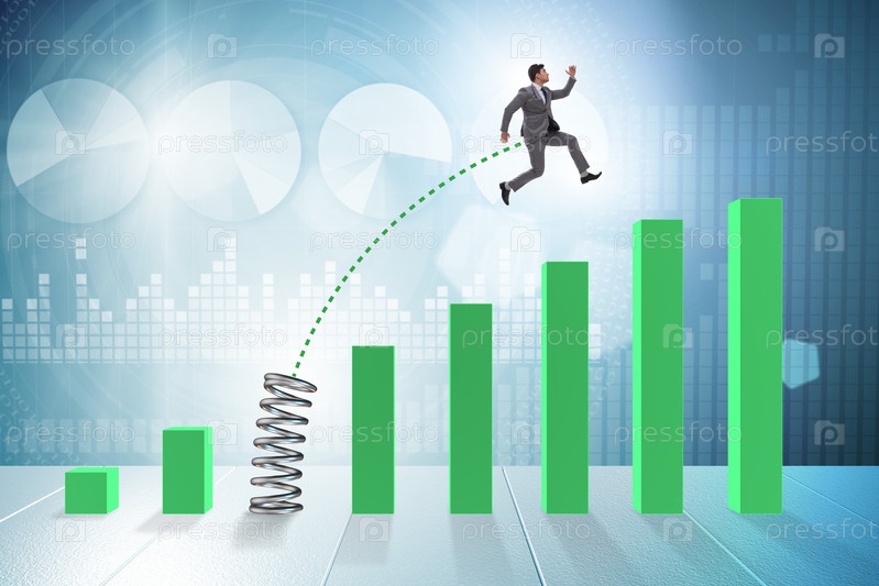 Бизнесмены прыгают по штрих-графикам