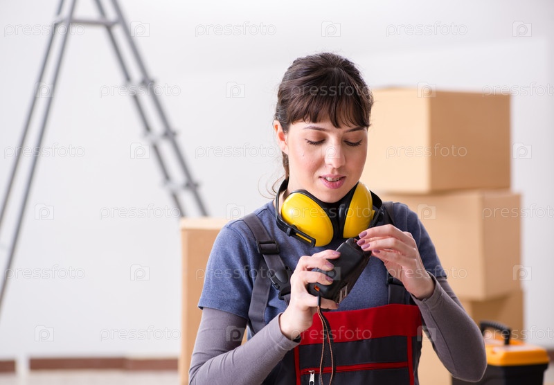 Подрядчик с измерительной лентой Женщина
