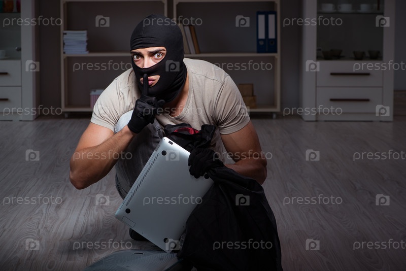 Вор, носящий маску из балаклавы на месте преступления