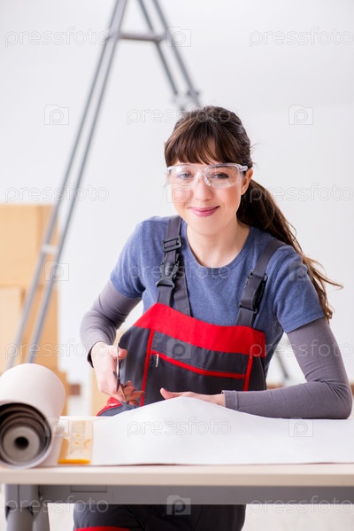Женщина готовится к работе над обоями