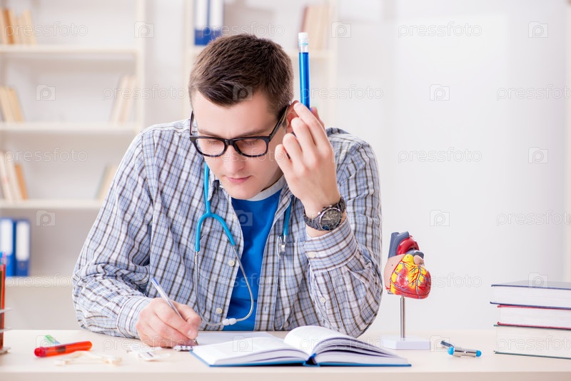 Молодой студент, изучающий химию в университете