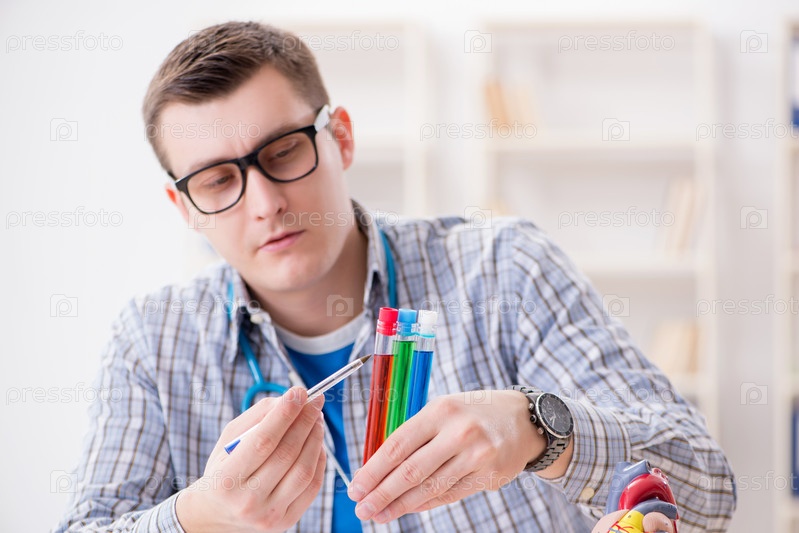 Молодой студент, изучающий химию в университете