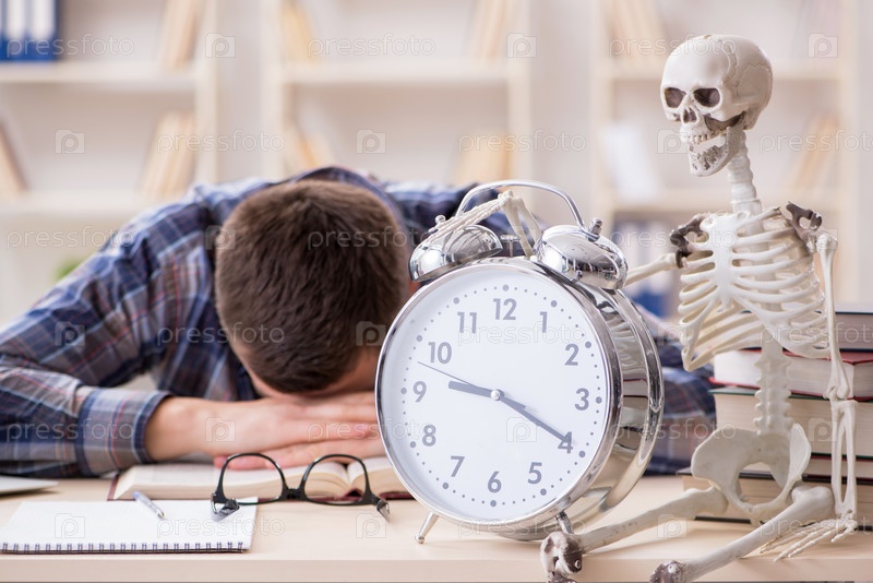 Ученик и скелет готовятся к школьным экзаменам