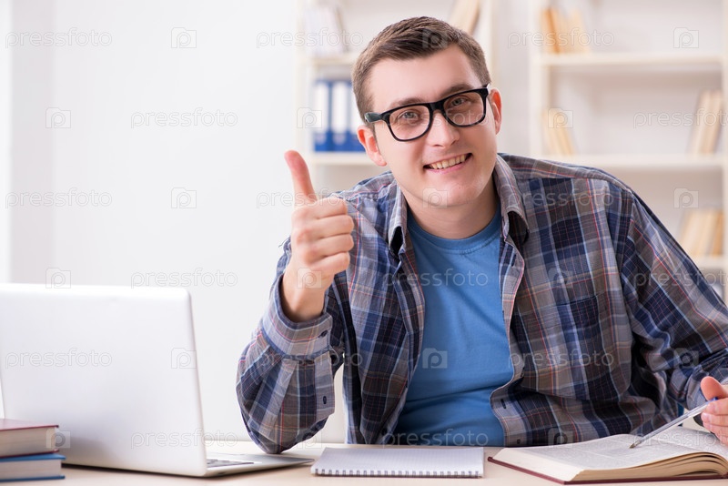 Молодой студент изучает через интернет в концепции дистанционного обучения