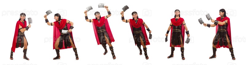 Гладиатор с ножом, изолированный на белом