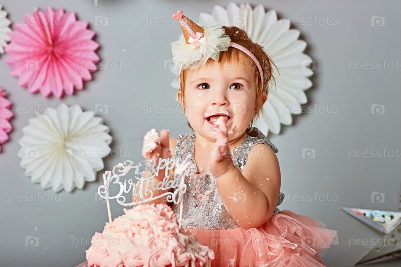 Очаровательная девочка с голубыми глазами в розовой юбке