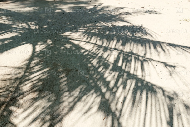 Силуэт пальмовых ветвей на песчаном пляже на тропическом острове