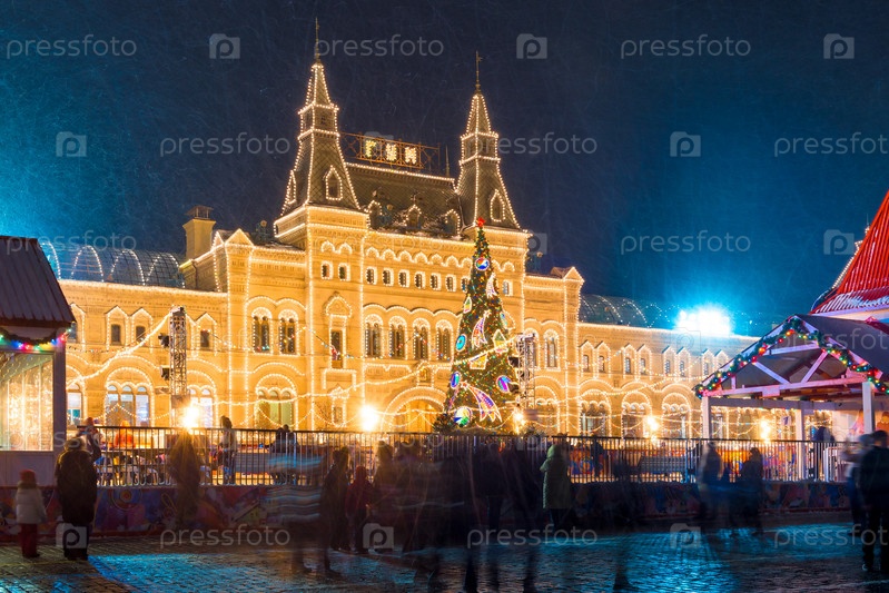 Новый год на фоне ГУМа на Красной площади в Москве, Россия