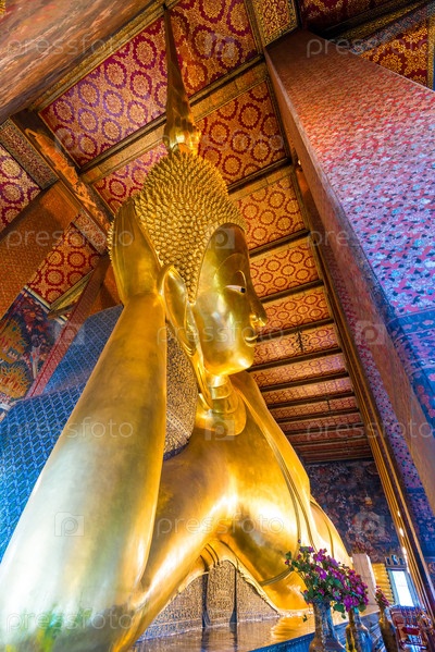 Большой лежащий Будда в храме в Бангкоке