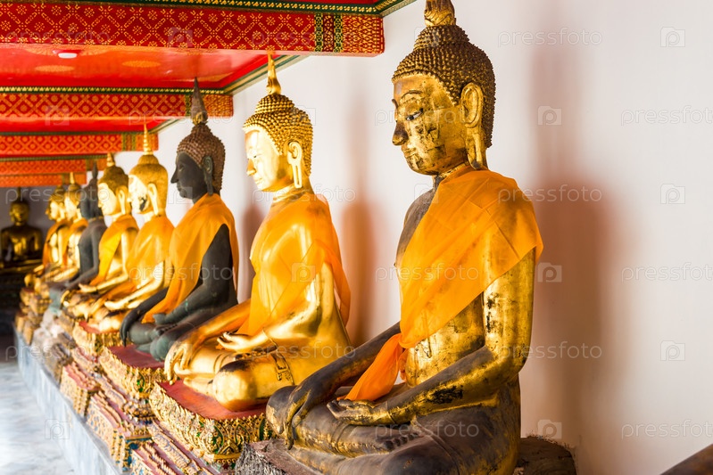 Золотые статуи Будды в храме Бангкока, Таиланд