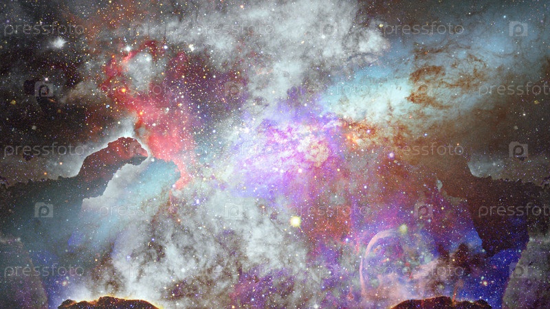 Туманность и галактики в космосе