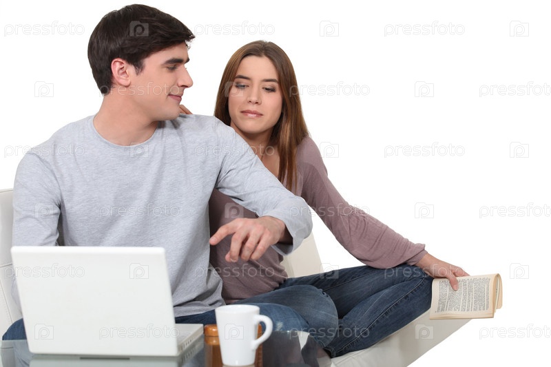 Молодая пара с ноутбуком
