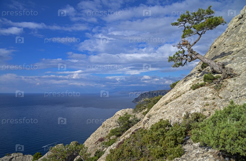 Сосна на скале над морем