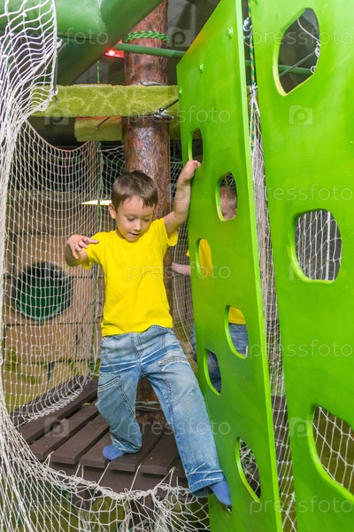 Мальчик проходит полосу препятствий