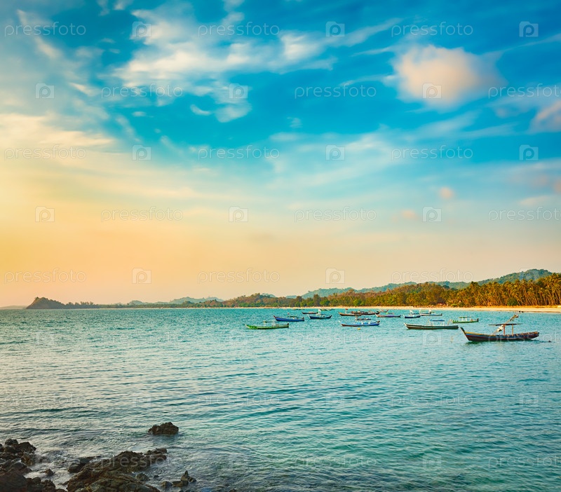 Морской пейзаж во время заката. Красивый пейзаж Индийского океана