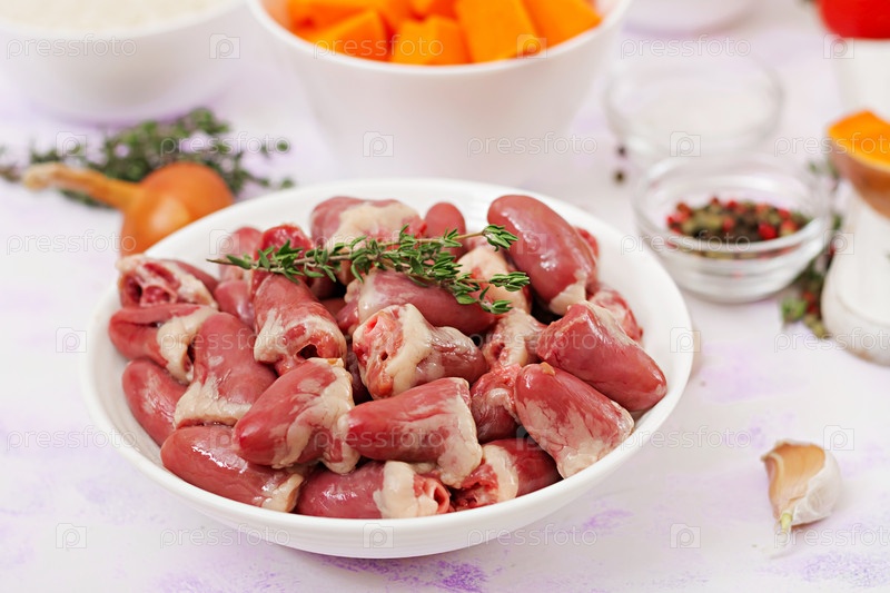 Сырые куриные сердца