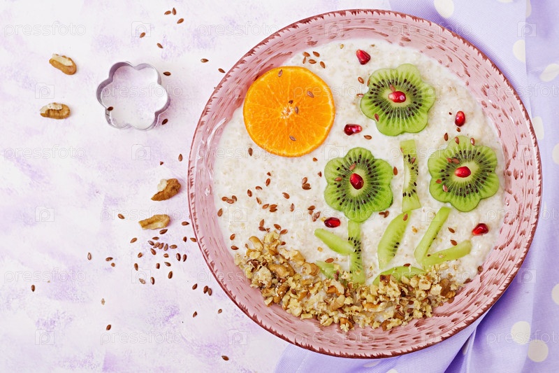 Вкусная и здоровая овсяная каша с киви, гранатом и орехами