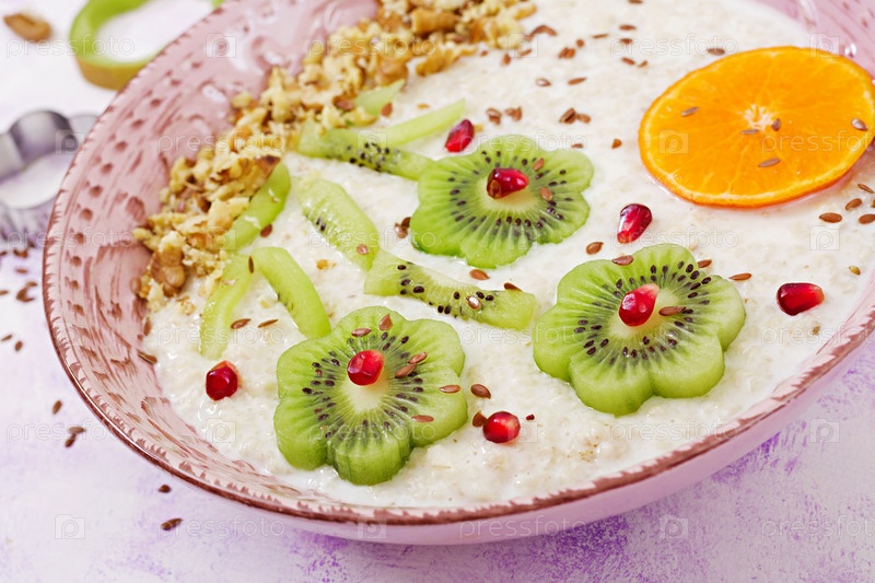Вкусная и здоровая овсяная каша с киви, гранатом и орехами
